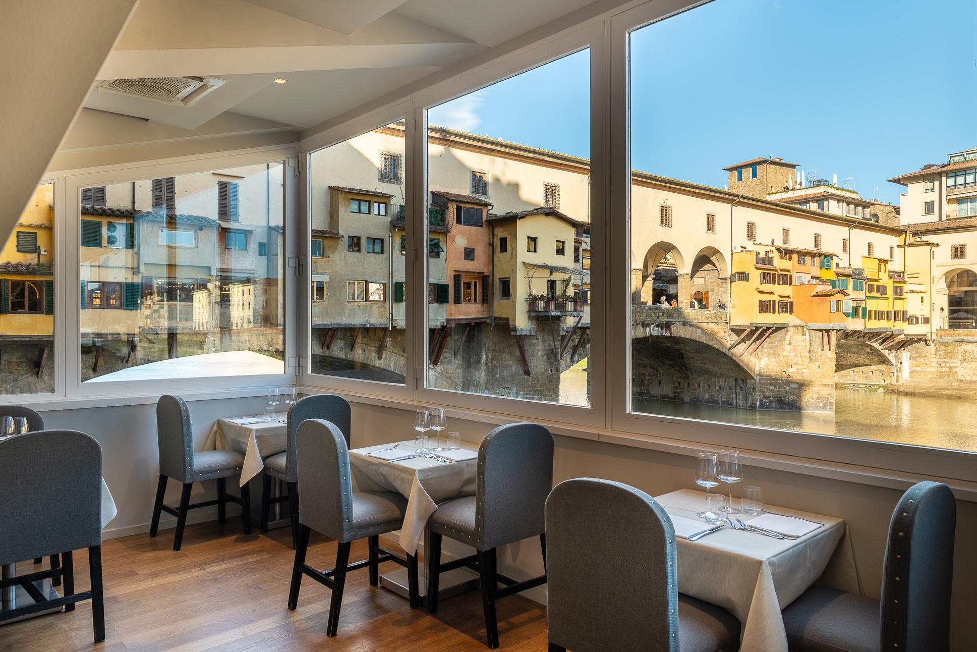 “…In sul passo d’Arno”. This is how Dante saw it, and this is how our guests can admire it, comfortably seated, almost in the arms of the bridge that makes Florence dream.